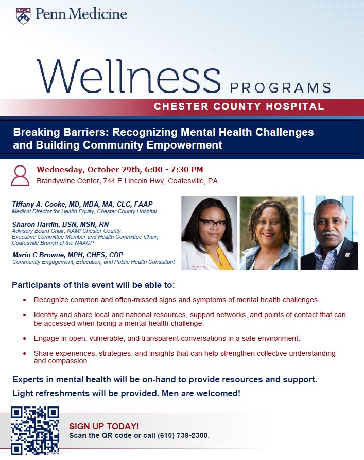 SIGN UP TODAY! Click on the event title above, scan the QR code on the attached flyer, or call (610) 738-2300.