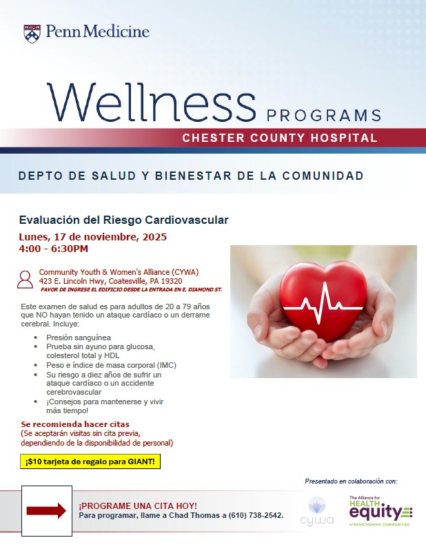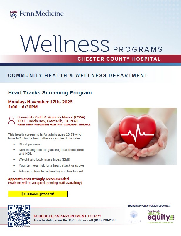 MAKE AN APPOINTMENT TODAY! Click on the event title above, scan the QR code on the flyer or call (610) 738-2300.