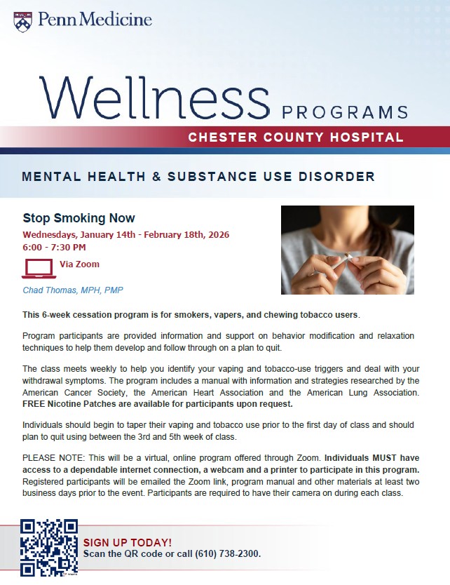 SIGN UP TODAY! Click on the program title above, scan the QR code on the attached flyer (for printed distribution only), or call (610) 738-2300.