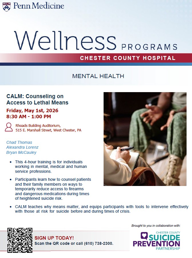 SIGN UP TODAY! Click the event title above, scan the QR code on the attached flyer, or call (610) 738-2300.