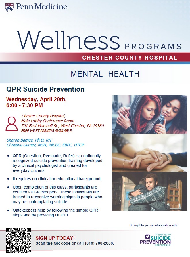 SIGN UP TODAY! Click the event title above, scan the QR code on the attached flyer, or call (610) 738-2300.